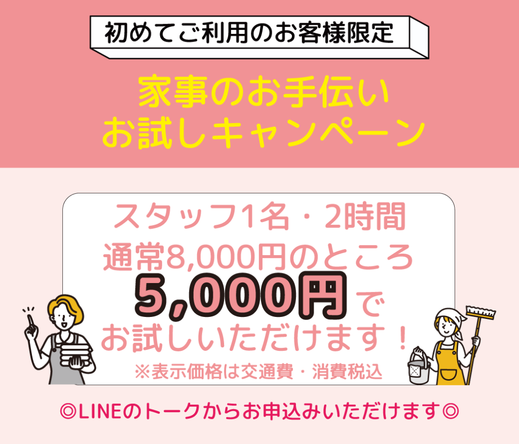 また、基本的にお掃除道具・洗剤・電源等はお客様のお宅のものを使用させていただきます。ご了承ください。(※料理以外のサービスが対象となります)