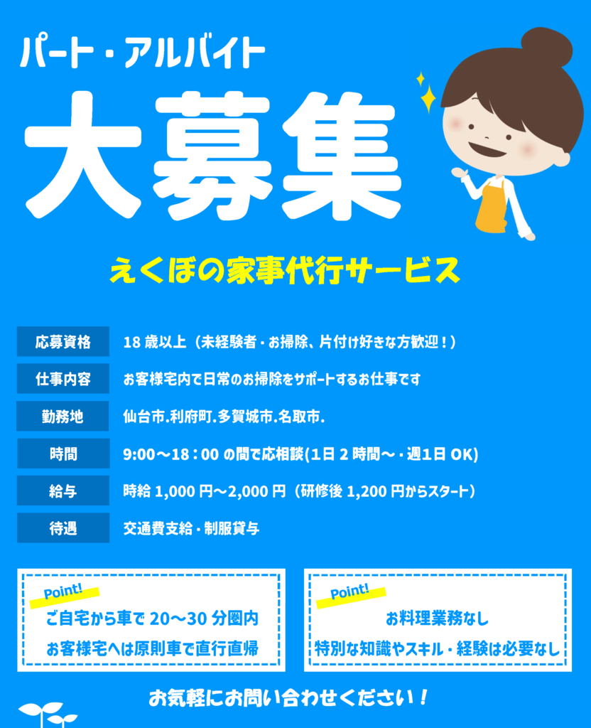 仙台の便利屋として実績のある「暮らしの応援隊えくぼ」のスタッフがお伺いします!